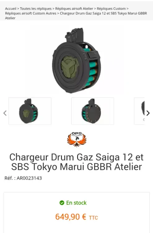 Bonjour je met en vente mon drum pour Saiga 12k MARUI GBB Gaz mais possibilité de passer en hpa pour ce qui veulent même si je n'en vois pas l'intérêt.