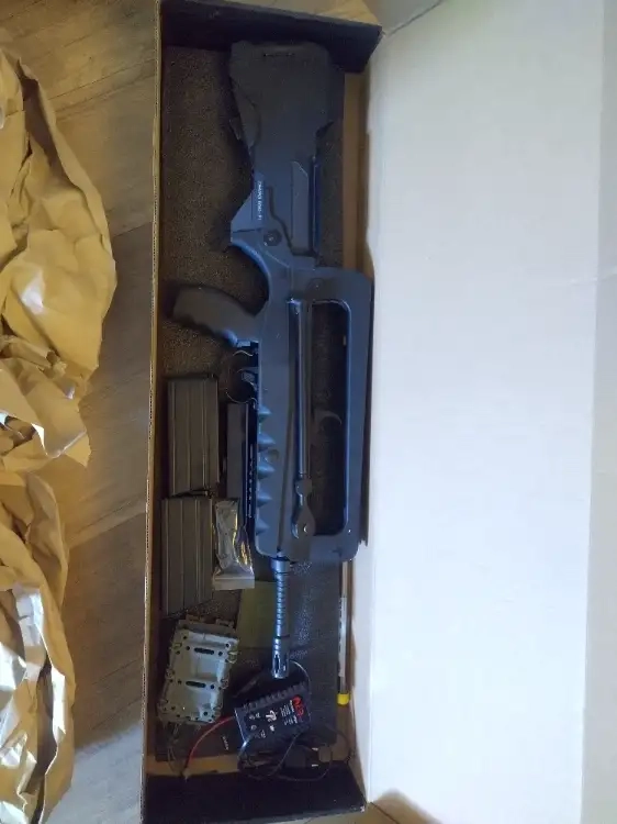 Je me sépare de mon FAMAS de chez Cybergun, version fibre de nylon, il est vendu avec deux chargeurs mid cap 30/60/120 cybergun, d'un porte chargeur type 5,56 en vert OD, d'une batterie 9,6v NIMH, d'un chargeur de batterie avec témoin de charge, d'une poignée, d'un rail pour mettre un red dot, tige de détourage.