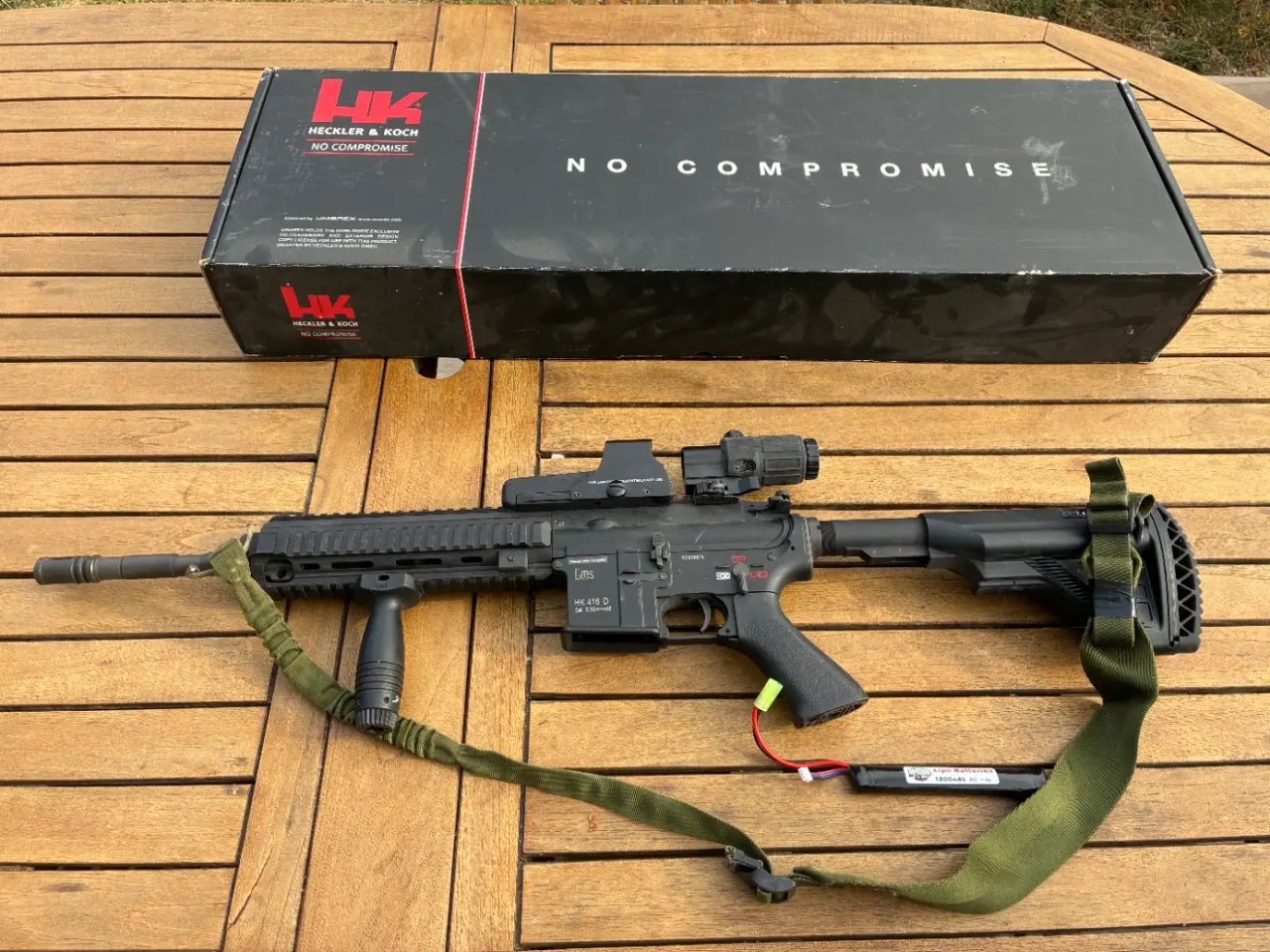 Vend ma réplique HK 416 D V2 VFC umarex, servi pour 3 partie grand max, aucune modification. Servi pratiquement que pour photo.
