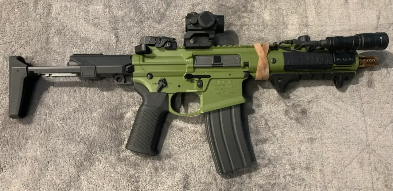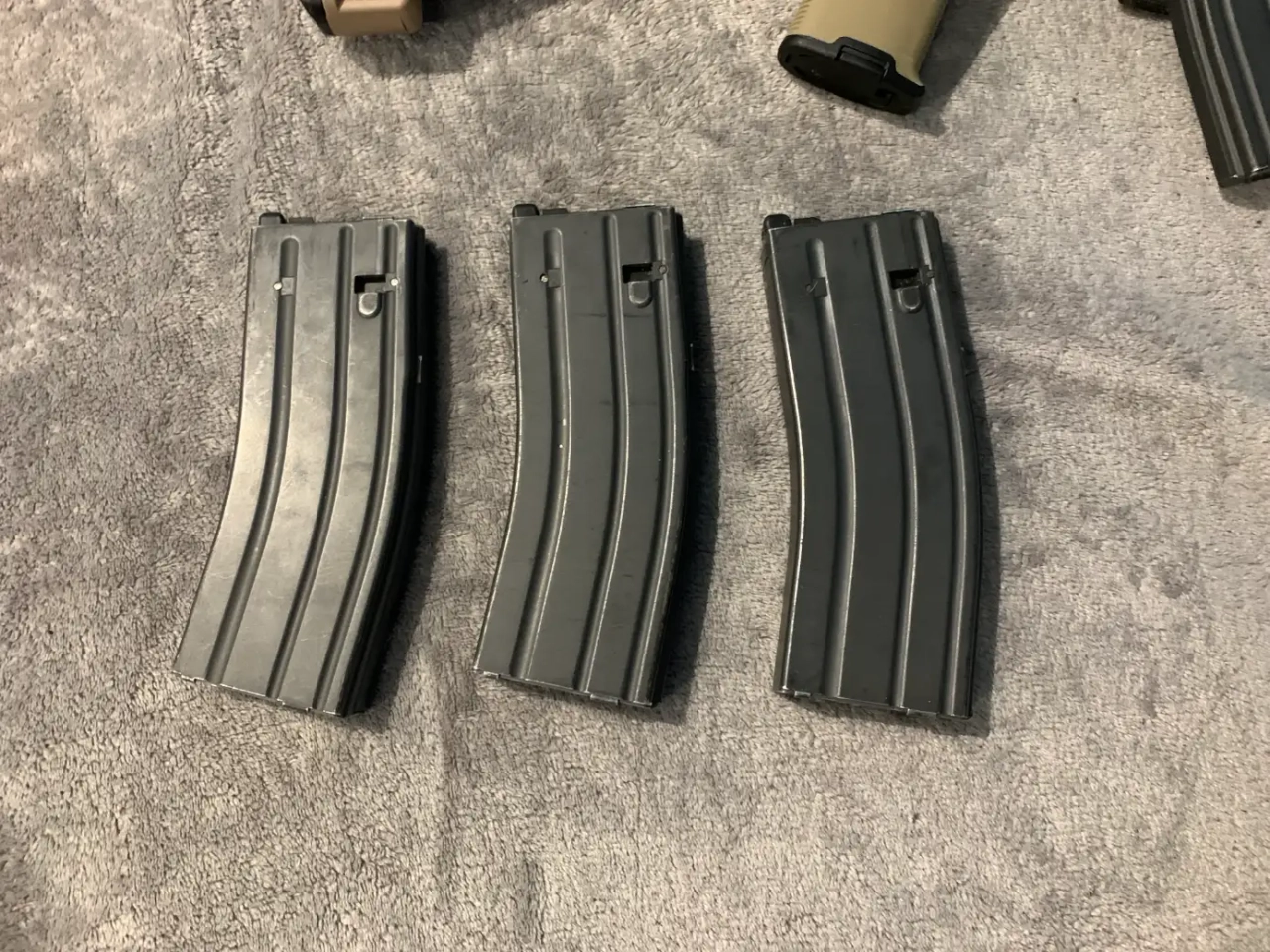 La réplique est fournie telle que sur la photo avec les accessoires (red dot Holy Warrior T1, lampe etc...) ainsi que 2 chargeurs Marui MWS sans fuite (je n'ai plus le chargeur d'origine).