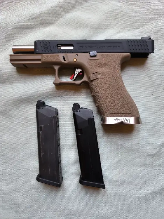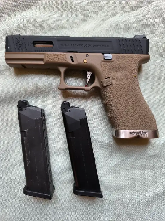 réplique de poing WE - série g17 custom GBB TAN vendu avec deux chargeurs