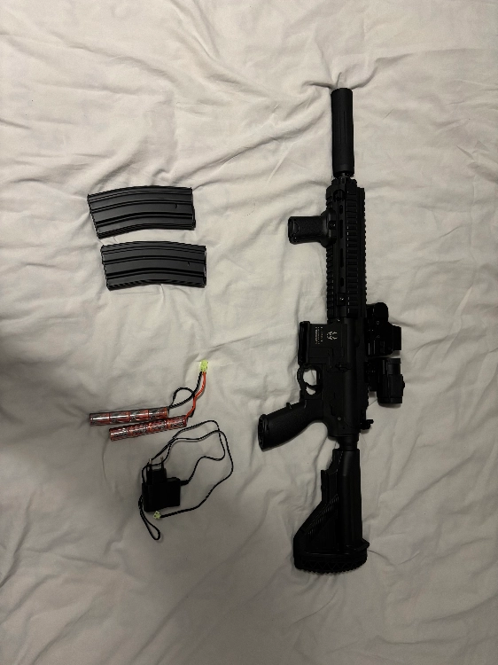 je la vend donc avec les 2 viseur et leur boîte + le silencieux + 2 chargeur + batterie + chargeur batterie + boîtier et je donne des billes avec