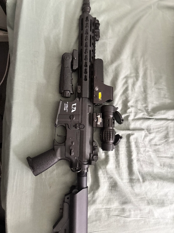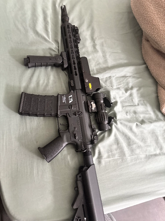 Je vends, réplique M4 Classic army jamais utilisé sur le terrain qui fonctionne bien fournie avec une viseur holographique une lunette fois 3 une batterie avec son chargeur une poignée UGT 5P tout est pratiquement neuf jamais servi