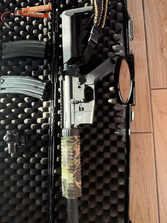 Bonjour, je vends ma réplique m4 lancer tactical avec 2 chargeurs, 2 batteries, sangle, une lunette et une boite de rangement solognac. Elle fonctionne parfaitement elle a fait environ 5 parties.
