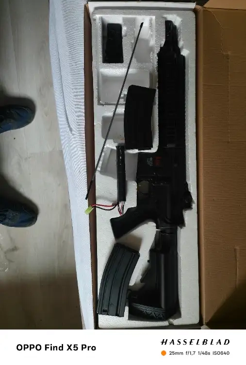J'ai acheté la réplique à un ami qui ne l'a jamais utilisée et moi non plus sauf quelques tir pour la tester d'où le déballage. J'ai arrêté l'airsoft avant d'avoir pu la tester donc vraiment comme neuve.