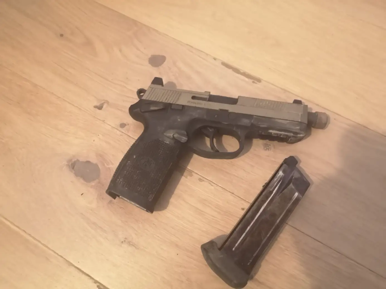Avec les marquages de la FN Herstal, ce FNX 45 a gaz est aussi à vendre.