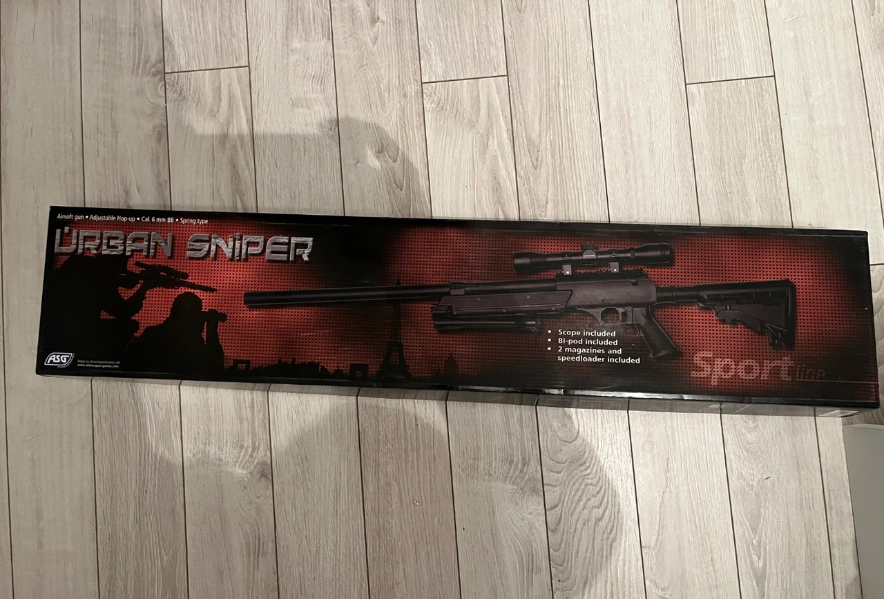 Urban sniper fournis sans le trépied le réglage pour la lunette n est pas fait est un peu abîmer il y a aussi un chargeur rapide pour les billes si vous voulez plus de photo contactez moi sur message