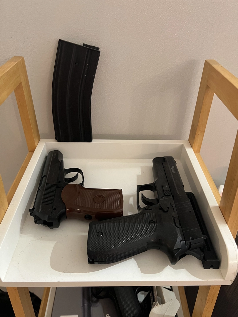 • Plusieurs répliques de poing (gaz CO₂, billes métal, billes biodégradables)