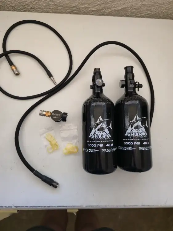 Bonjour je met en vente un kit HPA avec 2 bouteilles sans fuites et fonctionnelles + 2 ligne HPA USA USA et une EU vers USA
