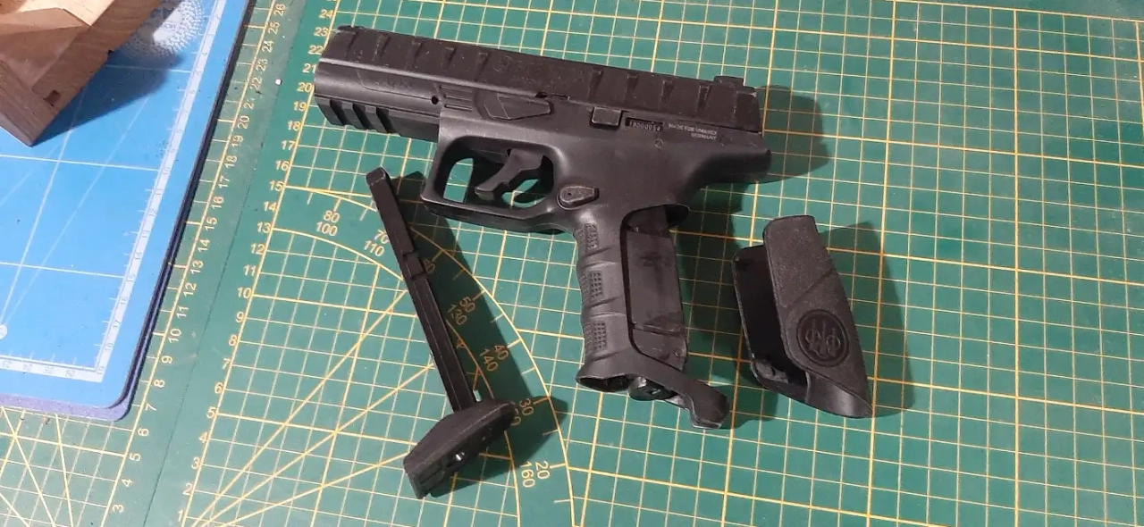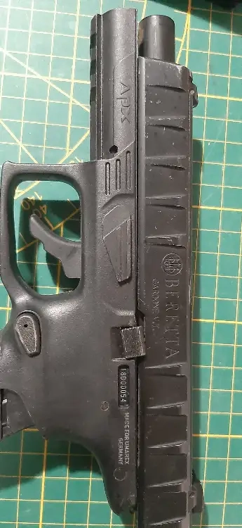 Pistolet airsoft 6mm Berretta APX CO2 Full Métal en tres bon état de fonctionnement!! parfois une légère fuite au départ du chargement de la cartouche mais disparait des les premiers tirs et pas systématique!! Blowback solide avec une petite course de la glissière, une réplique avec un bon kick. Bolt catch fonctionnel en fin de chargeur. Puissance d'environ 1 joule! Système seulement double action, la force à exercer sur la queue de détente est identique armé ou pas! Vendu avec un seul chargeur. Traces d'usages normales (voir photos). 660g Excellent en Backup!!
