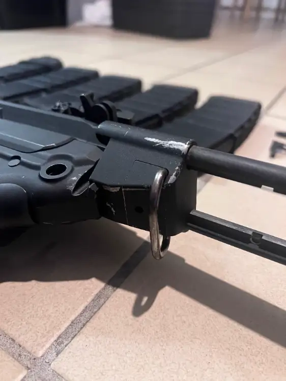 Egalement monté sur la réplique on a un "outer barrel support" qui vient supprimer le jeu natif du canon externe. Je fournis le support d'origine également.