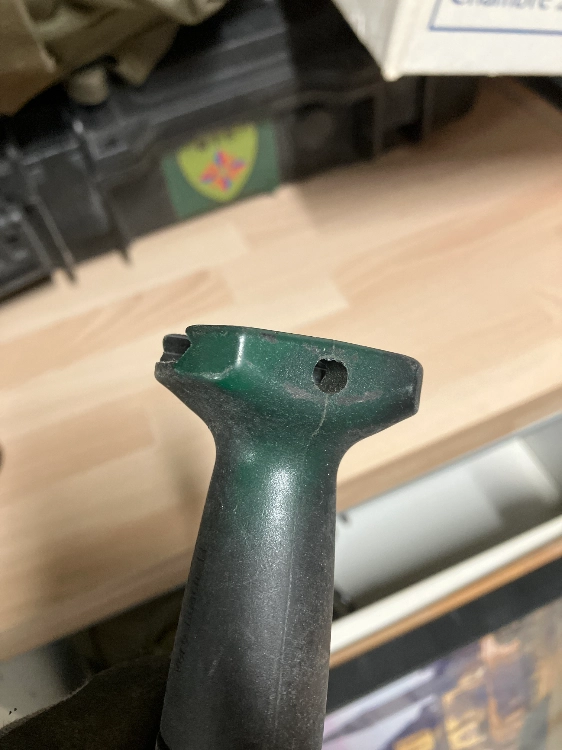Poignet pour rail 20mm trace d’usure et légèrement peinte avec du vert