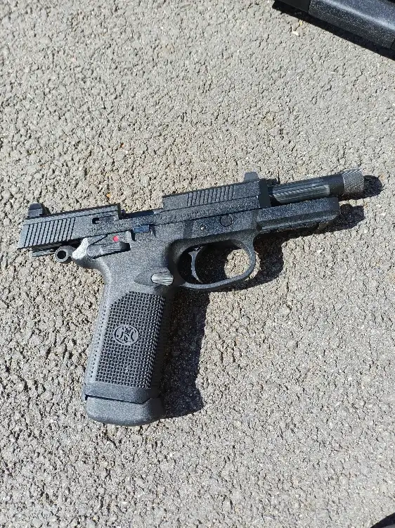 FNX 45 de la marque cybergun avec canon fileté et 3 chargeurs sans fuites, vendu avec sa malette de transport