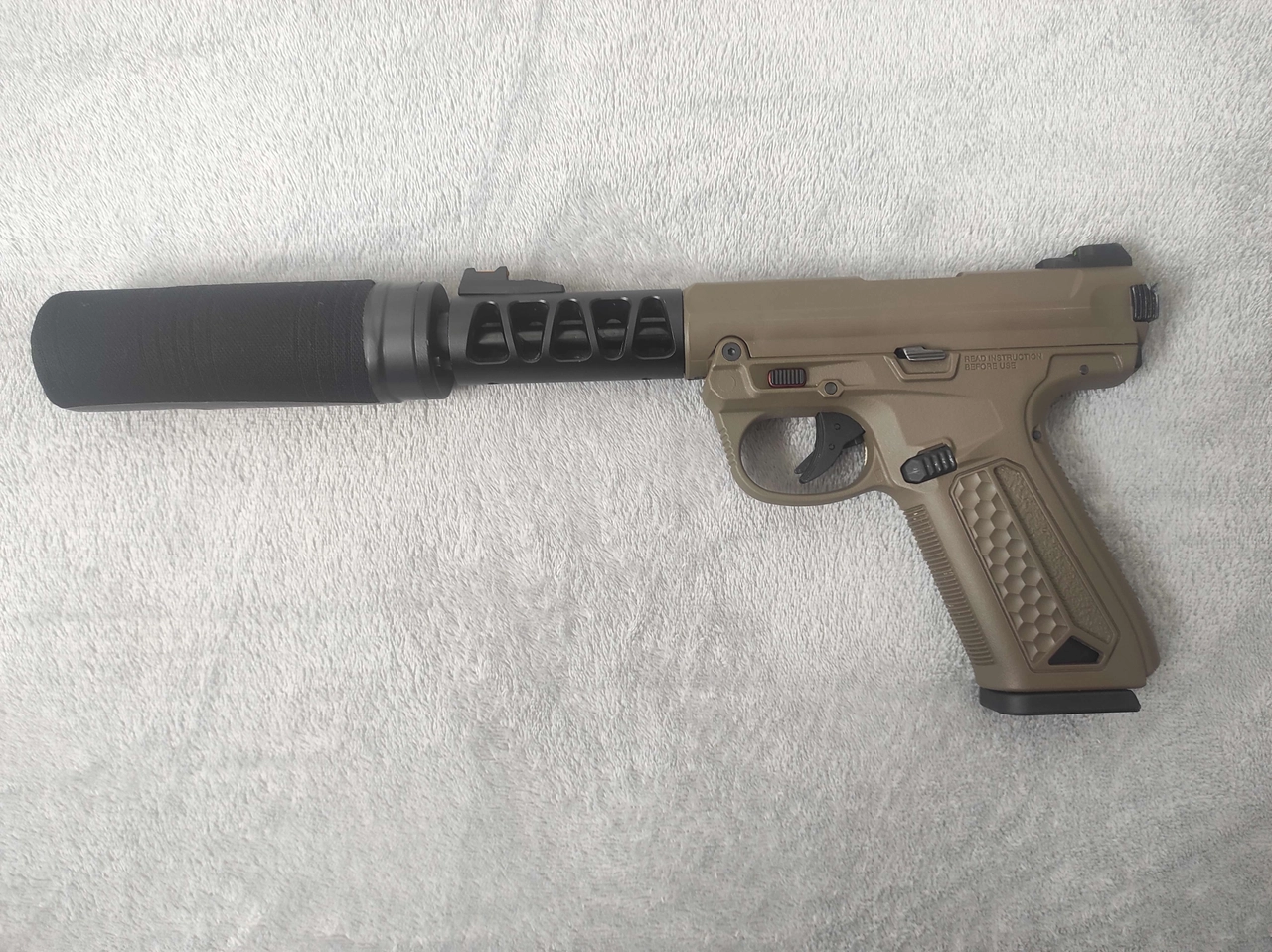 Polyvalent et personnalisable, le AAP01 d’Action Army est un pistolet GBB inspiré du Ruger Mark IV, réputé pour sa fiabilité et sa compatibilité avec de nombreux accessoires. Léger grâce à son corps en polymère renforcé, il offre un tir précis grâce à un hop-up réglable, et propose les modes semi et full auto pour s’adapter à tous les styles de jeu. Compatible avec les chargeurs de type Glock, il dispose d’un filetage 14mm CCW pour silencieux et d’organes de visée fibre optique pour une acquisition rapide de la cible. Idéal pour les joueurs cherchant performance, customisation et sensations sur le terrain
