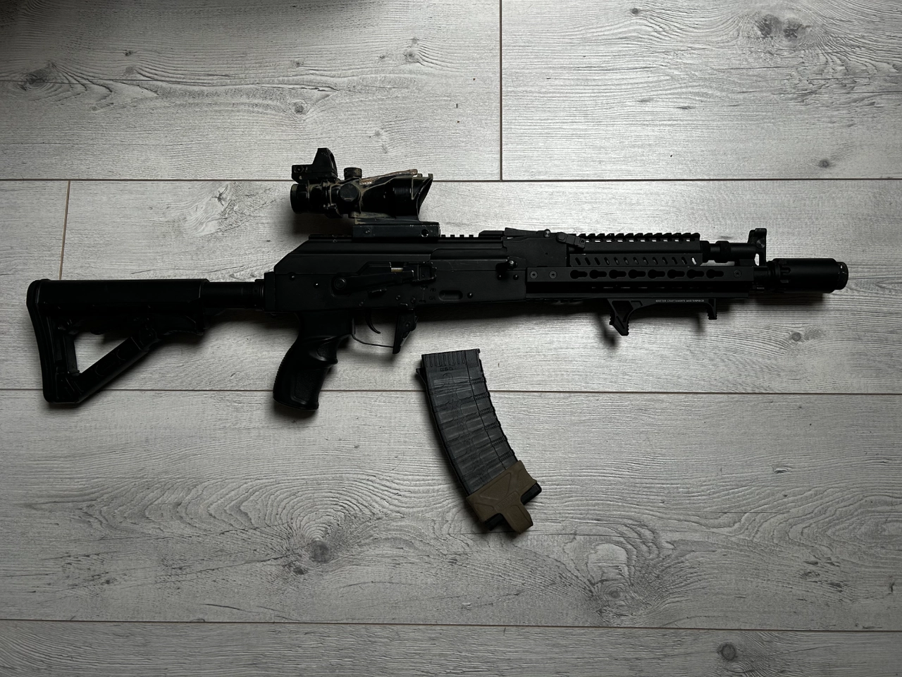 Bonjour je vend mon ak 74e g&g entièrement d’origine. Vendu comme sur les photos et avec 5 chargeur et ça batterie .