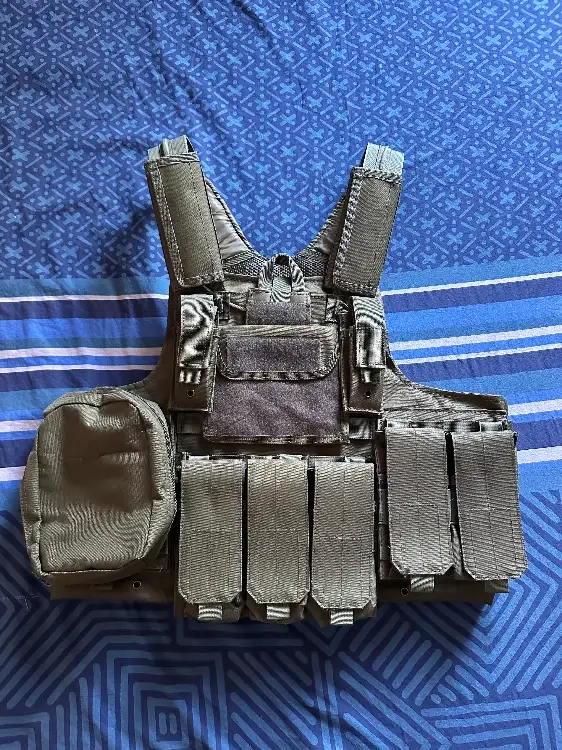 Je vends mon gilet pare-balle d'airsoft couleur olive en très bon état.