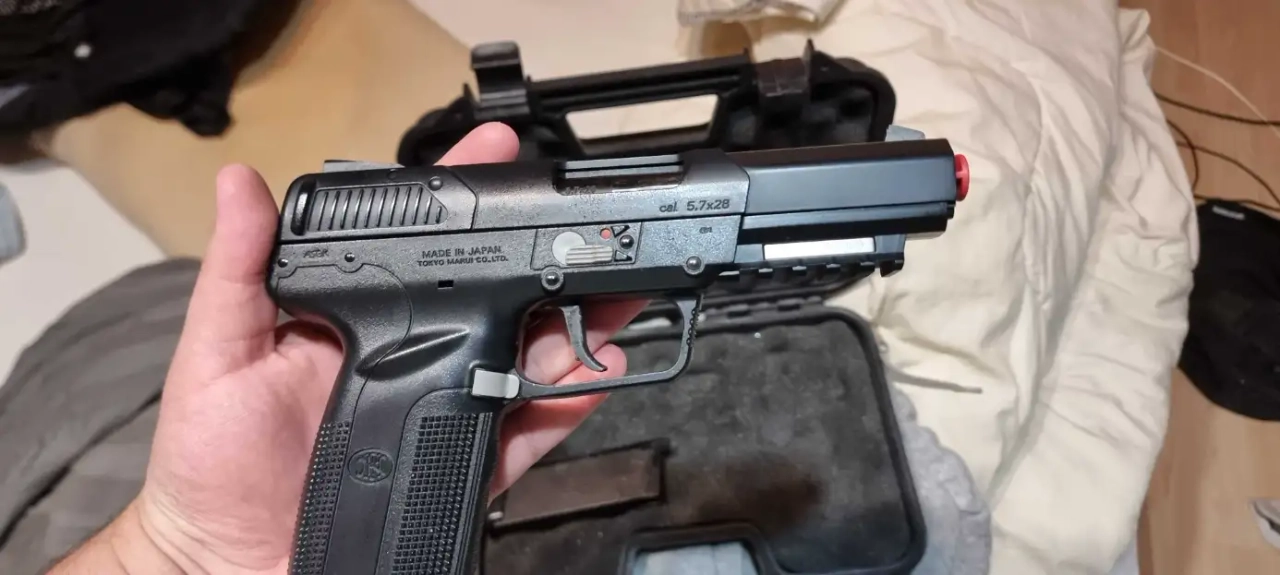 Vends Five-SeveN Tokyo Marui achetée en 2017. Réplique en parfait état de fonctionnement, très bien entretenue et graissée. Chargeurs fournis mais endommagés suite à une chute (vendue en l’état car théoriquement réparable). Fournie avec boîte de rangement ( avec le carton si demandé) et pot de graisse d’entretien.
