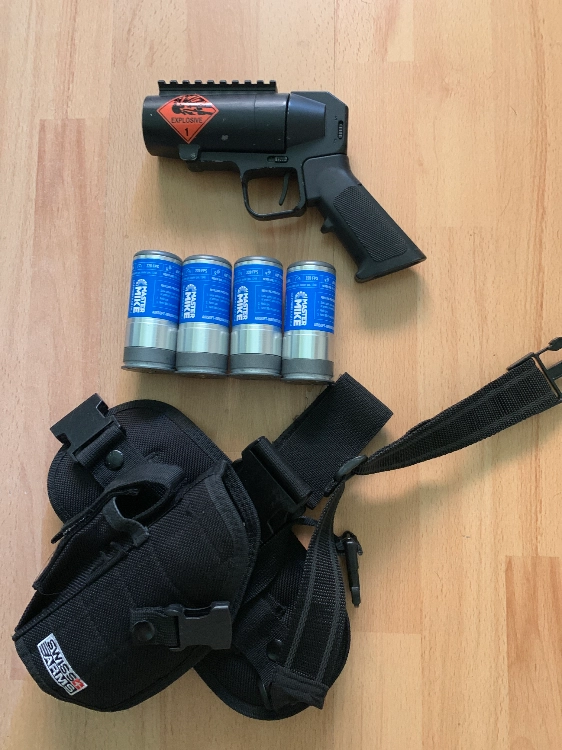 Fourni avec son holster de cuisse swiss armes et 4 grenade master Mike fonctionnelles et sans fuite.
