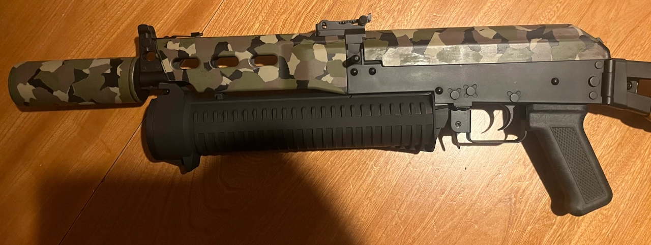 Il est entièrement renforcé, il y a une gearbox ressort QD , mosfet aster v3 , canon poli , joint Maple leaf , piston acier , aoe corrigé, gears hélicoïdale systema , moteur et grip slim super high torque Ares .