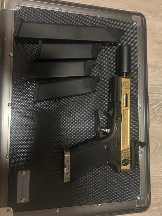 Comme j'arrête mon hobby, je vends mon Glock personnalisé. Il a été amélioré avec un système de réglage et de hop-up Maple Leaf. Un Tracer est inclus. Il est livré avec trois chargeurs GBB et un chargeur étendu.