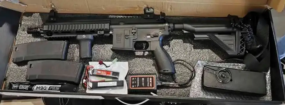 Je vends ma réplique, encore sous garantie jusqu'en Mai 2026, car j'arrête l'airsoft. Elle est accompagnée de plusieurs accessoires et de la batterie + chargeur de batterie.