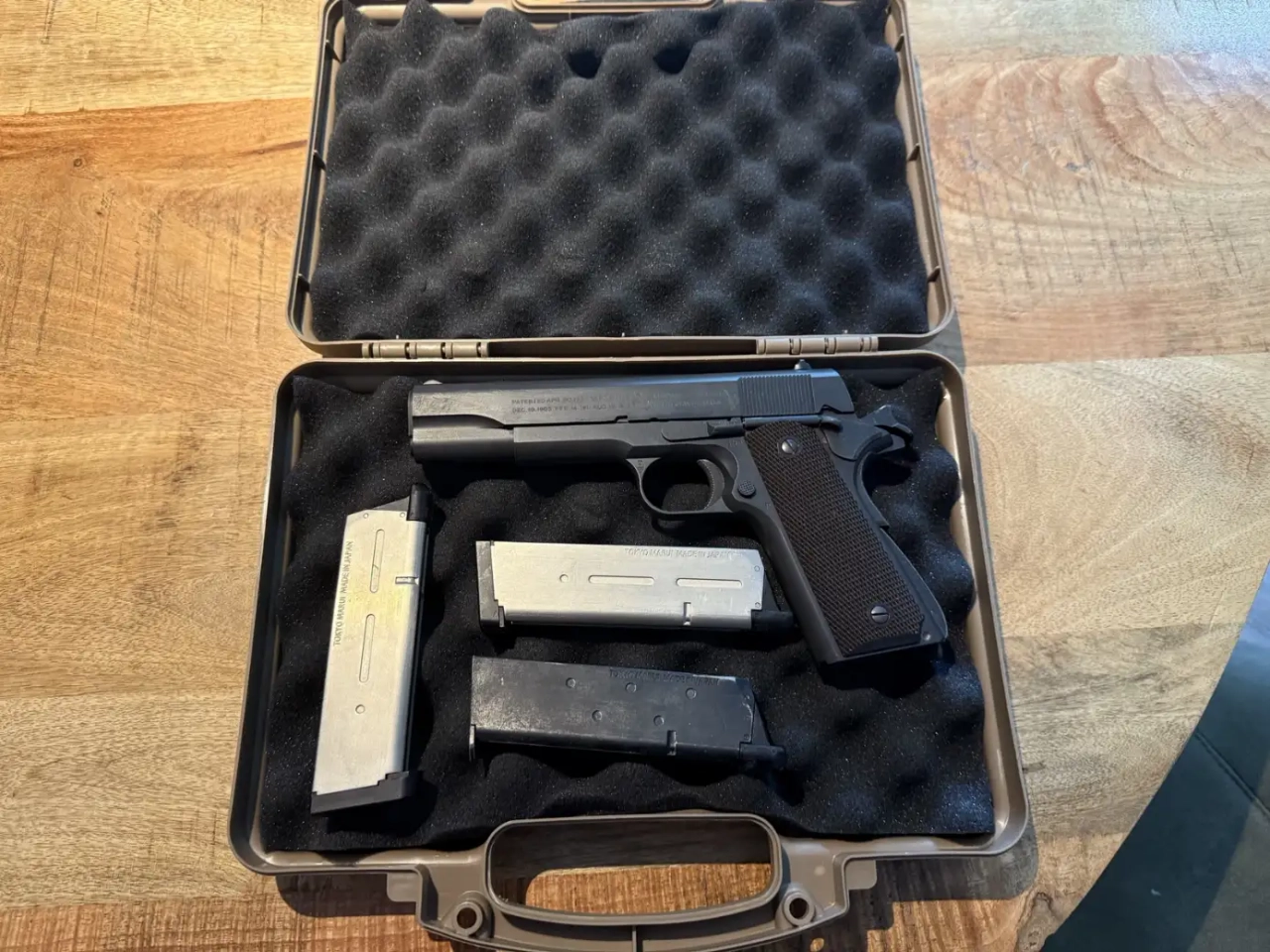 Je vends mon pistolet Tokyo Marui M1911A1 à gaz blowback, car je ne pratique plus l'airsoft. Qualité de fabrication légendaire TM, très précis et fiable. Fonctionne parfaitement et est livré avec des chargeurs supplémentaires et un étui rigide.