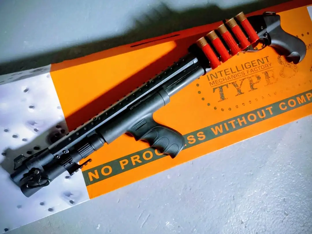 Sont installés la pompe poignée pistolet et le shield tous 2 de marque RS TacStar, reversible avec les fournitures d'origine pour connaisseurs.