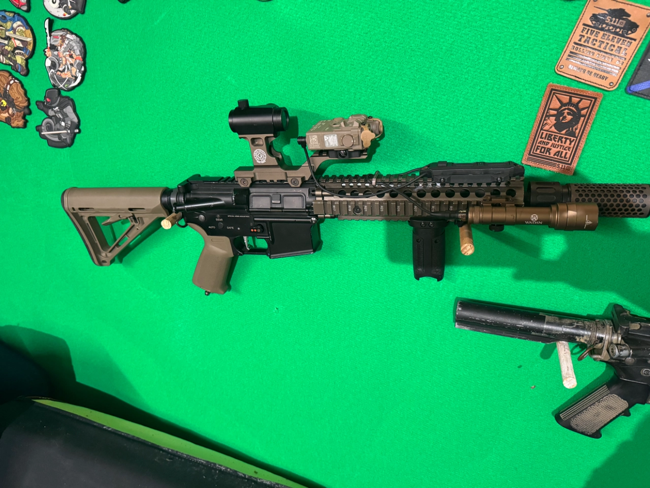 Mk18 Hpa avec un kit polar star jack dedans avec équipe un bloc up hop rtp joint vert canon précision 6.02 rétention de chargeur max de même pour la détente crosse style magpul fournie avec une batterie de plus les accessoires avec