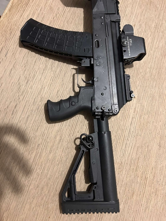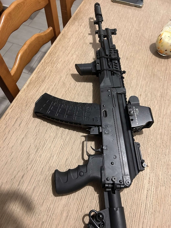 elle sort des bonne performances elle contient 4 chargeurs mid cap une poignée une batterie lipo viseur holographique Une lampe