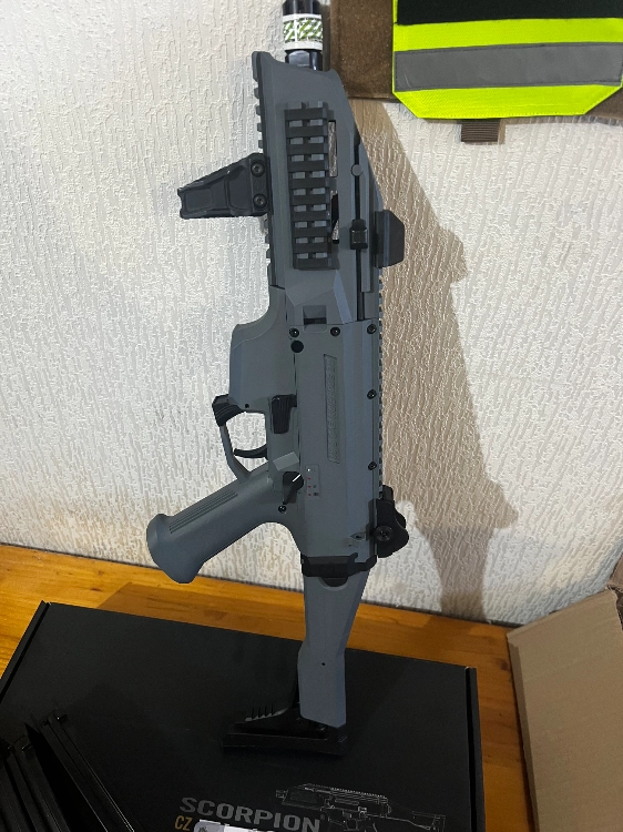 Scorpion evo ASG modèle Gris, la réplique est quasiment neuve, 2000 billes tirées max, elle marche du tonnerre !!