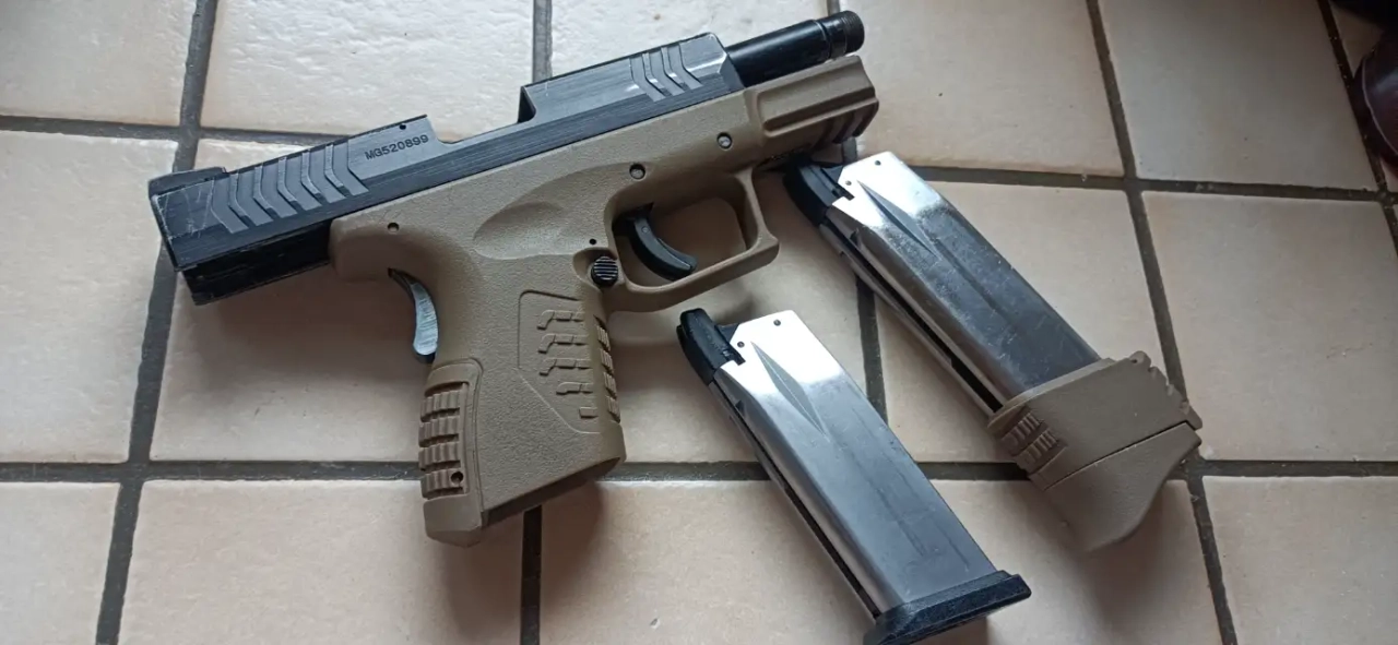 - [son chargeur d'origine] + [un chargeur long pour pièces] (manque valve de chargement du talon) + [2 rallonges à chargeurs]