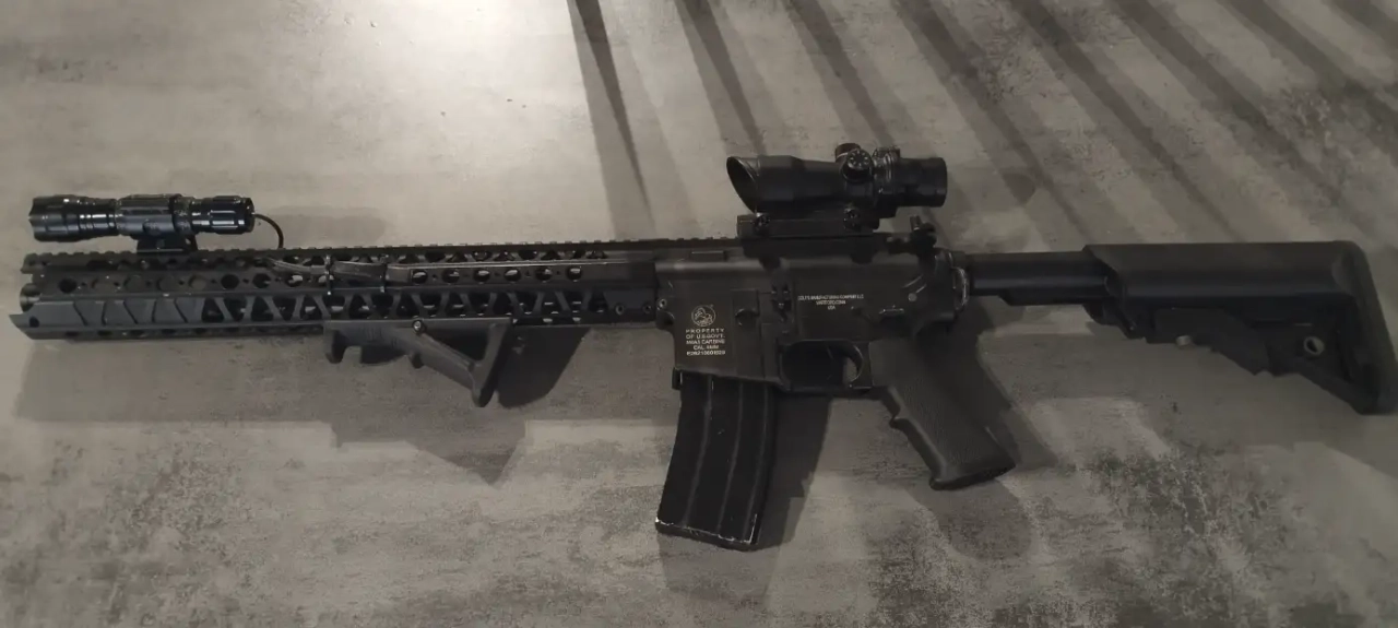 - Externe : red dot tactical OPS / grip / lampe 400 lumens avec bouton déporté