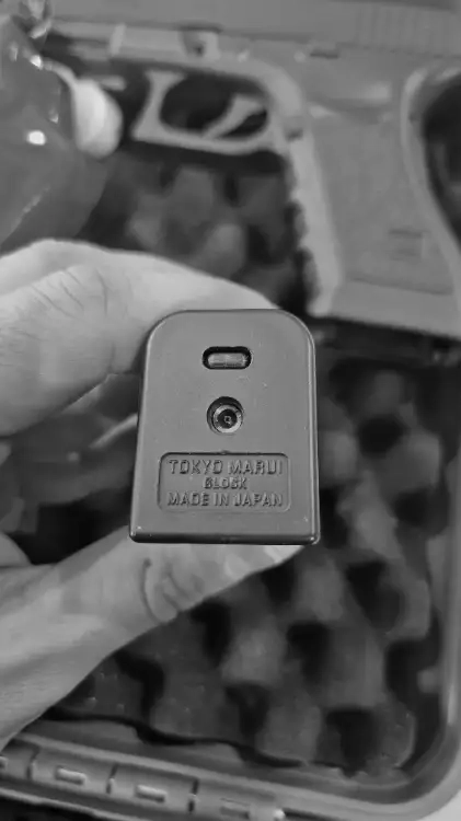 Avec un glock 17 tokyo marui a gaz avec 1 chargeurs.