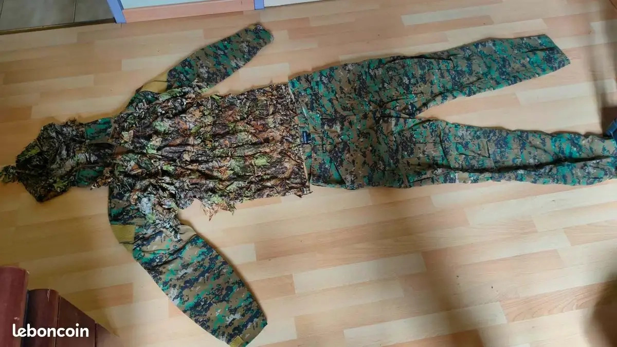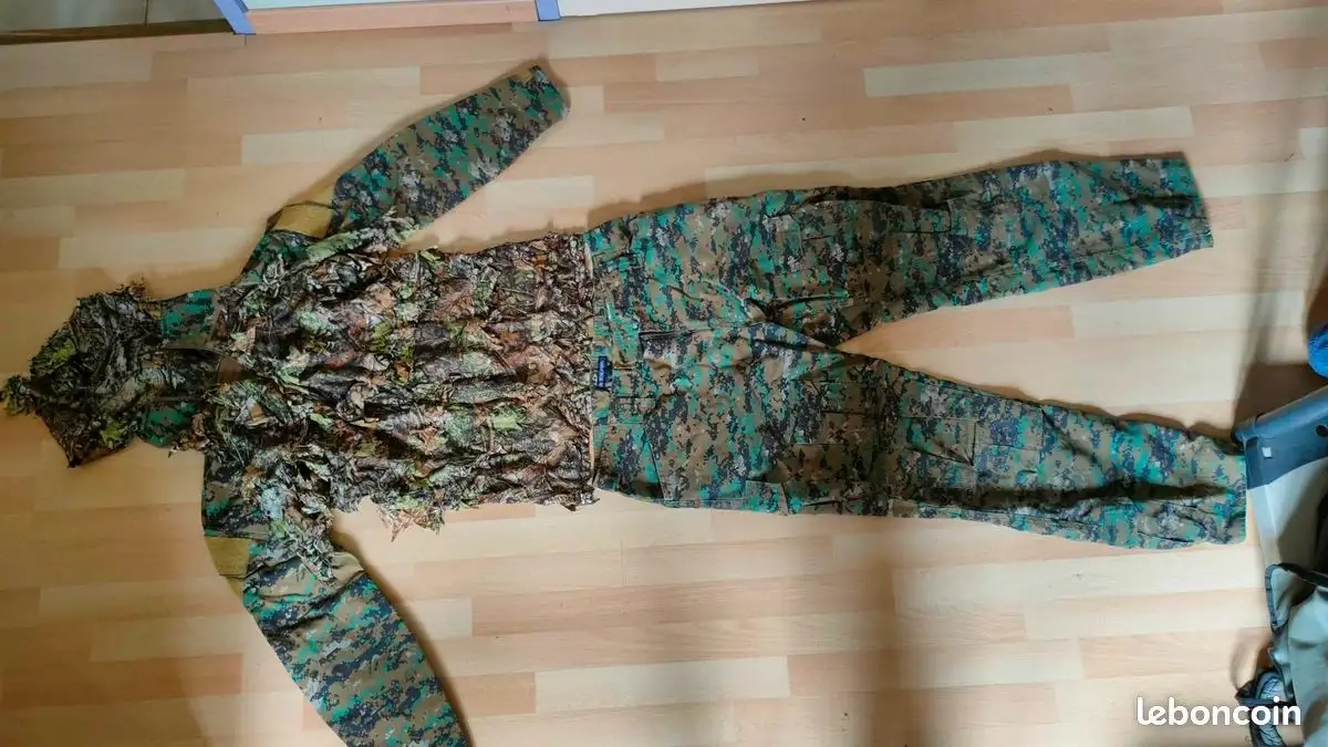 Je vend ma tenue d'airsoft, pantalon + t-shirt type ubas, camouflage Marpat, version boisé.