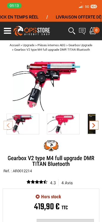 On y retrouve 3 répliques: aeg(HK416) interne Gearbox V2 type M4 full upgrade DMR TITAN Bluetooth ,