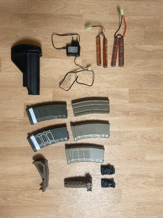 Pour 150€ ( prix de départ sans accessoires) il y'a la réplique , chargeur d'origine défaillant + chargeur noir 300bbs ( molette)