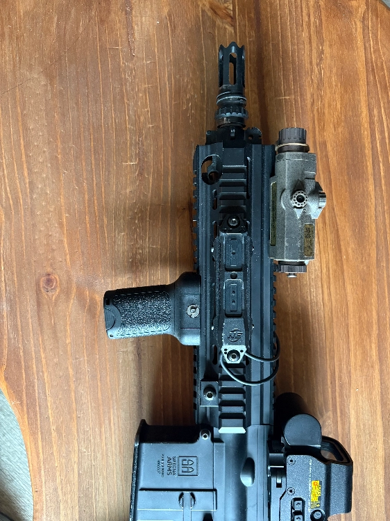 • AN/PEQ-15 (fonctionnel : laser rouge + lampe) monté sur rail