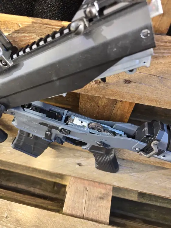 Il s’agit de la version Space Grey équipée de la détente électronique SSS.III E-trigger et de la gearbox split propre à ICS, très pratique pour l’entretien.