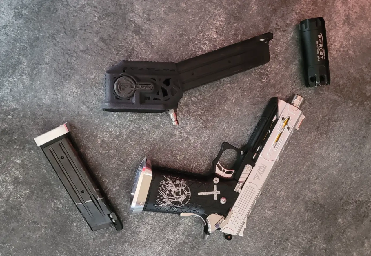 Possible de le jouer gaz ou hpa, la vente comprend le capa, un adaptateur hpa coudé pulse avec chargeur alu (200g),un traceur(bifrost), un chargeur gaz tm et une malette de transport mousse avec différentes pièces de rechanges (ressort etc)