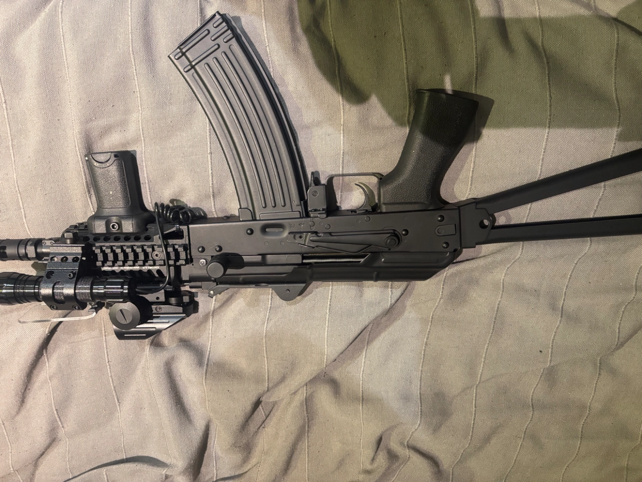 Bonjour à tous, je vends une AkS 74 U bloc back marque J. G Work, elle est équipée d’un Mosfet, entièrement programmable d’un canon de précision 6.02 d’un garde main ris lct d’une batterie pour en 11.4 lipo,d’un viseur Multi point rouge d’une lampe type SurFire, une poignée tactique avant une poignée de pistolet type Magpul d’un compensateur de recul sur la crosse, ainsi que d’un téton d’ergonomie pour la glissière, déjection, c’est une réplique qui sort 347 FPS très constant aussi efficace en CQB qu’en extérieur j’avais fait un montage pour aller avec une tenue Bear de Escape from Tarkov j’ai changé de réplique et je ne m’en sers plus. C’est une réplique qui a été achetée au mois d’avril avec trois chargeurs mid cap et un hi cap