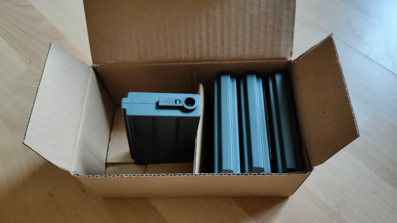 Suite à l'achat d'une boite de 7 chargeurs, je n'en utilise que 3, donc 4 NEUF dans leur boite à vendre. Chargeurs Mid-Cap 130BBs M4/M16 Court