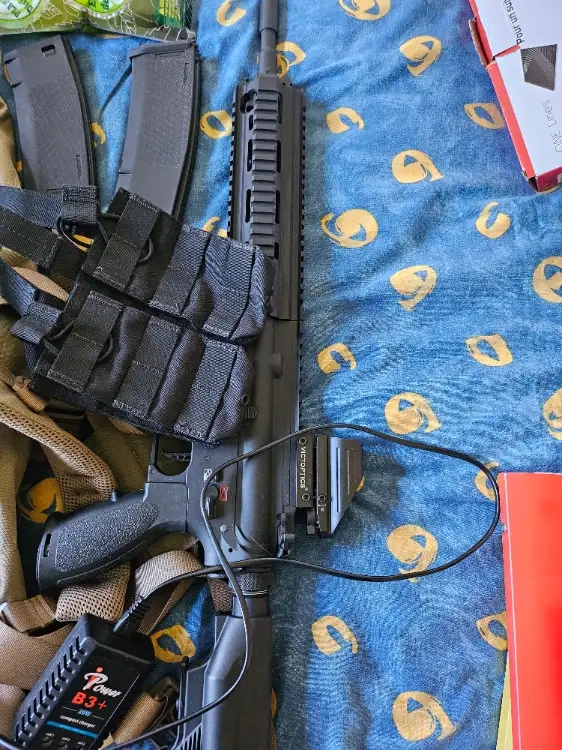 Bonjour, je mets en vente ma réplique car j'ai arrêté là pratique je me suis servi de celle ci que deux fois donc fonctionne très bien et en parfait état. Il faut juste racheter une batterie tout simplement. Je vends avec la réplique un sac complet de billes, deux chargeurs, une paire de gants, un viseur pointeur laser, le porte chargeur et un sac F2 militaire pour tout transporter