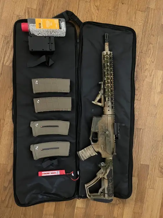 Je vende la réplique avec 4 chargeur (2 Chargeur DMAG Hi-Cap 300 billes Delta Armory, et 2 chargeur Chargeur Mid-cap 250 billes Enhanced Polymer EPM1 Dark Earth PTS)