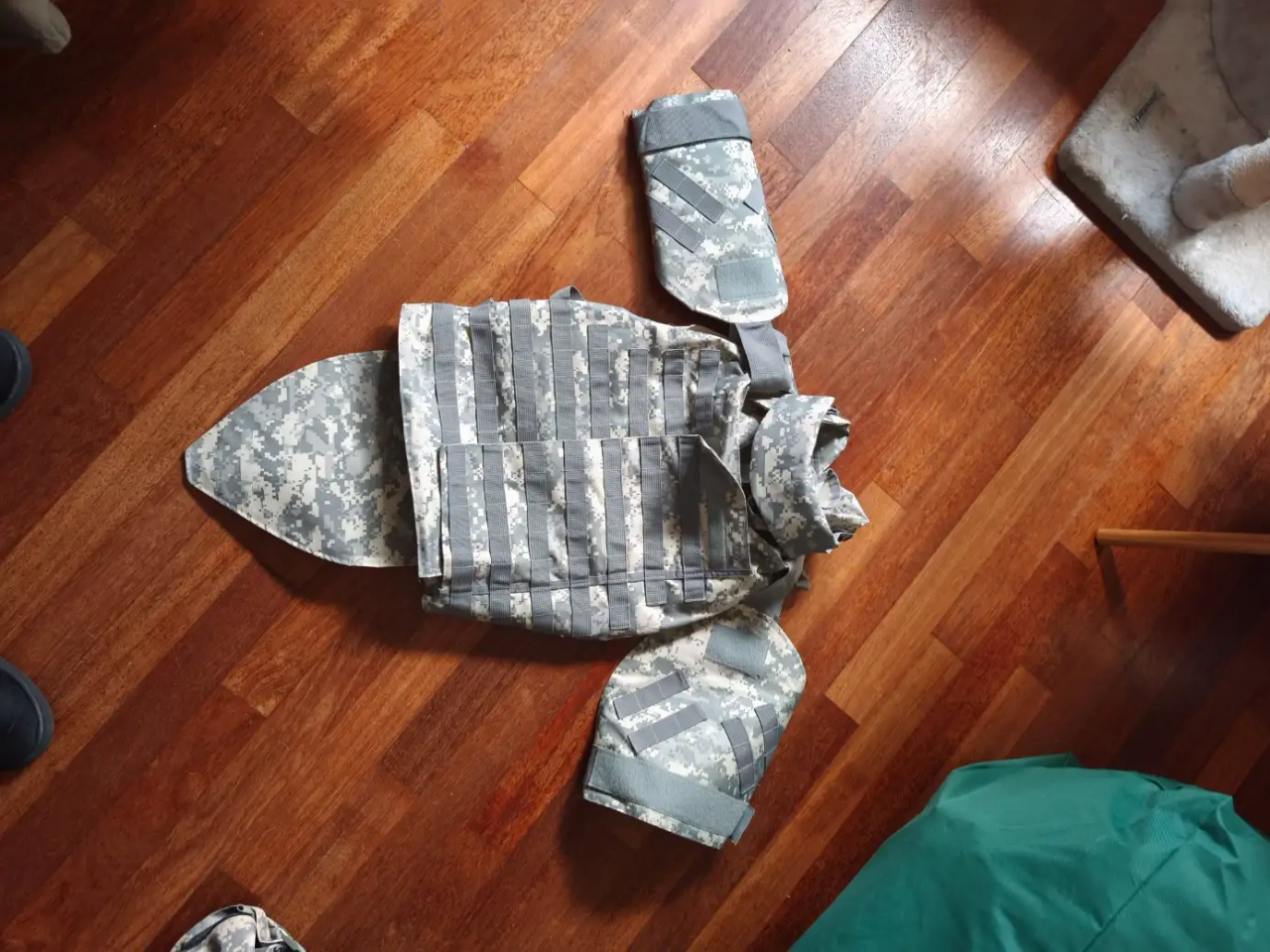 Vds tenue acu, 2 gilets, veste taille L, bon, couvre casque bandana et poche. Envoi possible, d autres photos sur demande