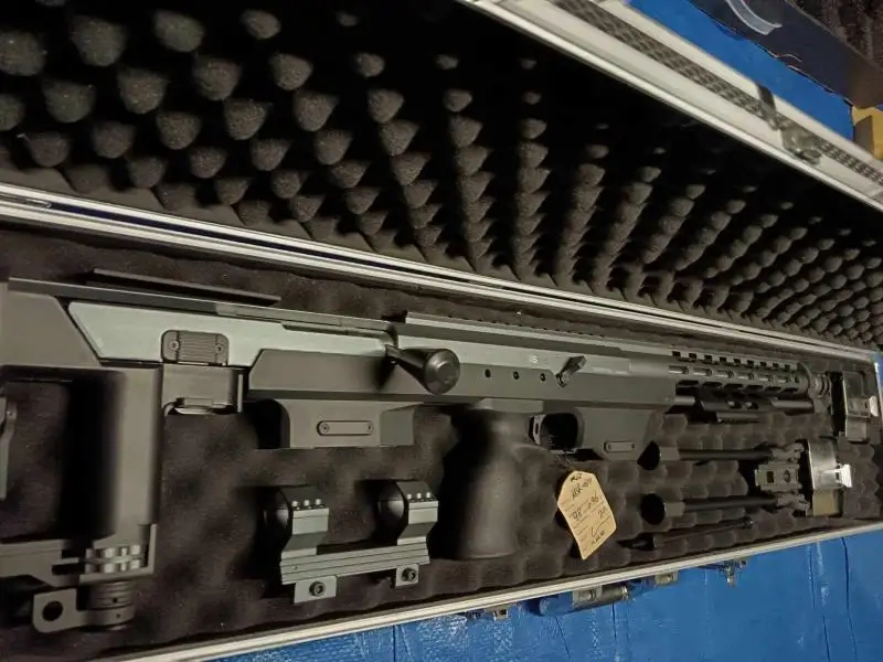 La réplique a uniquement été utilisée pour de la collection. Etiquette et boîte encore présents, avec 2 chargeurs sans fuite, montage lunette et bipied. Fonctionne parfaitement. Mallette non fournie.