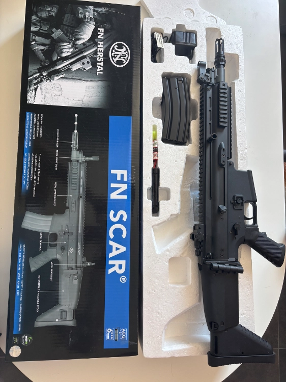 Je vends ma réplique d’airsoft SCAR de marque Cybergun, achetée neuve en août 2020 (facture disponible). Elle est en excellent état, très peu utilisée et entièrement d’origine.