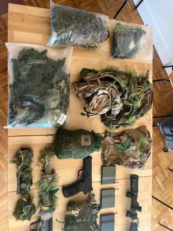- Kit avec plusieurs modules pour confectionner une autre ghillie (Rafia, modules nano screen, guirlande camo 3D, rislan marrons) : 45 euros.