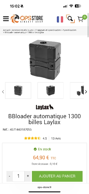 Je vends un BBLoader automatique Laylax 1300 billes, en excellent état.