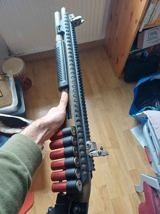 Je vend mon fusil à pompe golden eagle à gaz avec ses rails MBUS (copies) que j'ai rajouter pour plus de précision et une vingtaine de cartouches.