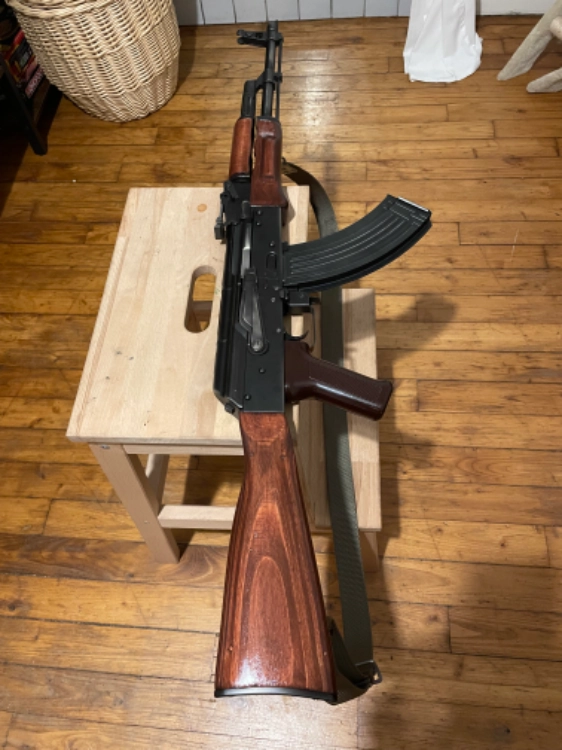 Fourni avec un chargeur E&L acier, sangle d’ak originale et j’ai retravaillé le bois pour avoir une couleur acajou, plus réaliste que la couleur d’origine.